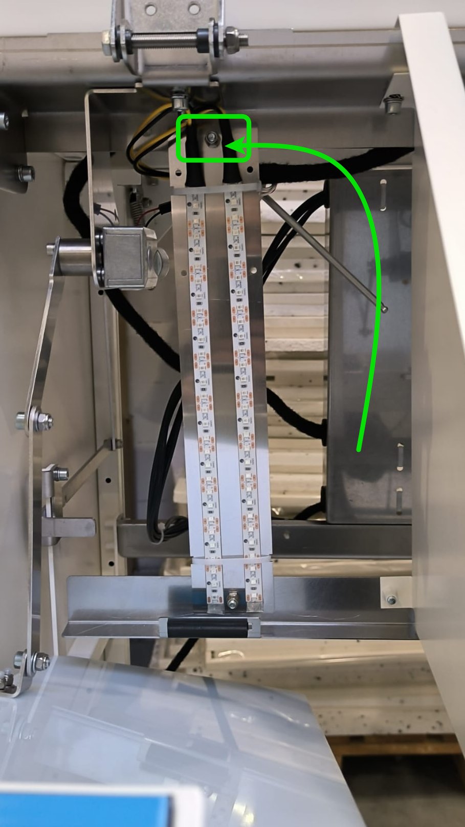 Pay special attention to the direction! The beam has an arrow drawn on it. This arrow should point down and be on the opposite side of the mounting screws to the frame! (see photo below)